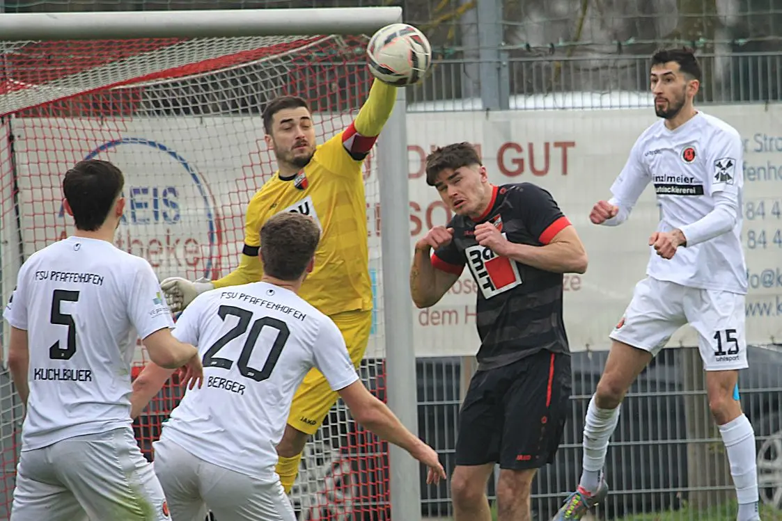 Das war vom 1.FC Sonthofen mal eine Demonstration der Stärke. Die Oberallgäuer gewannen das Spitzenspiel beim FSV Pfaffenhofen mit 4:0 (2:0), überholten die Hausherren und kletterten auf den 3. Tabellenplatz. Der FCS stand hinten bombensicher und schlug vorne eiskalt zu. Zudem fielen die Treffer zu einem optimalen Zeitpunkt.